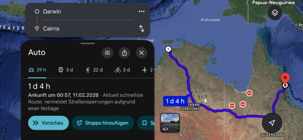 Nach 2.600 Kilometern kamen wir also in Cairns an. Heile und das Auto läuft auch noch.