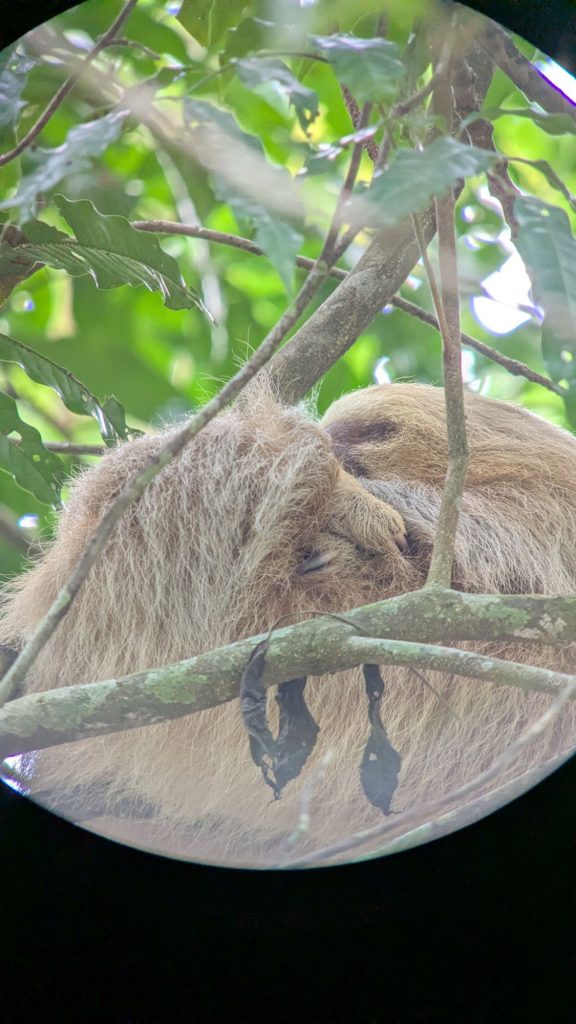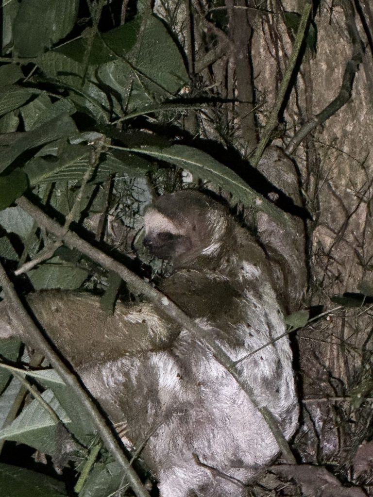 Und am Ende relativ nah vor uns . . . ein Dreifingerfaultier. 😀