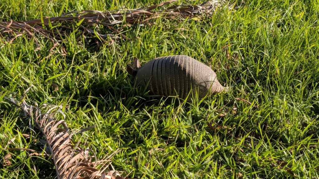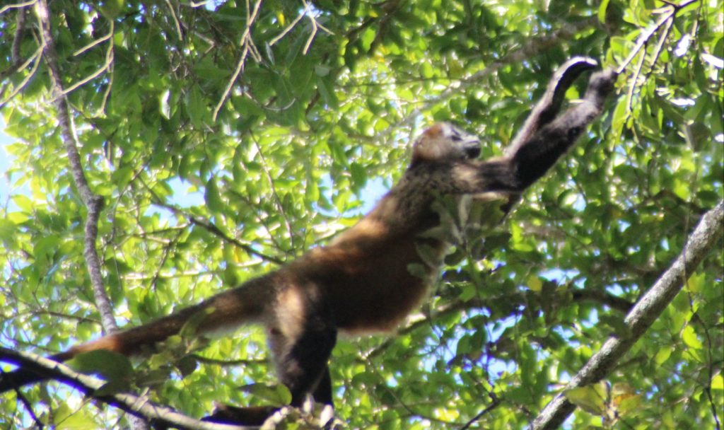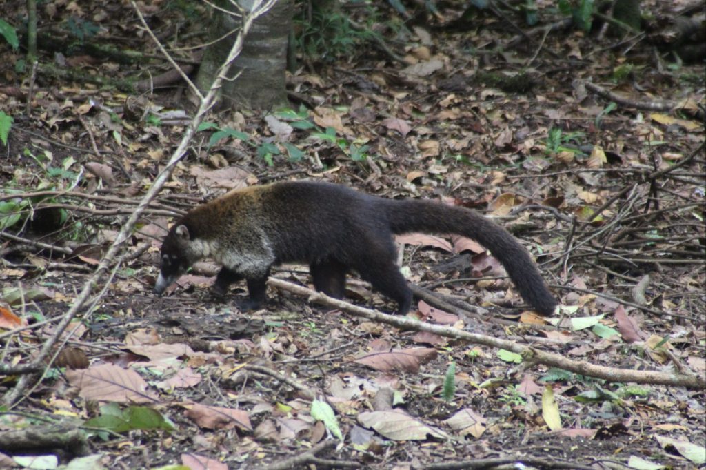 Das erste, das wir sahen, als wir auf unseren kleinen Balkon traten, war ein Gürteltier, das eifrig nach Fressen im Boden suchte. Später flanierte noch ein Nasenbär vorbei und ein paar Kolibris umflogen die Pflanzen.