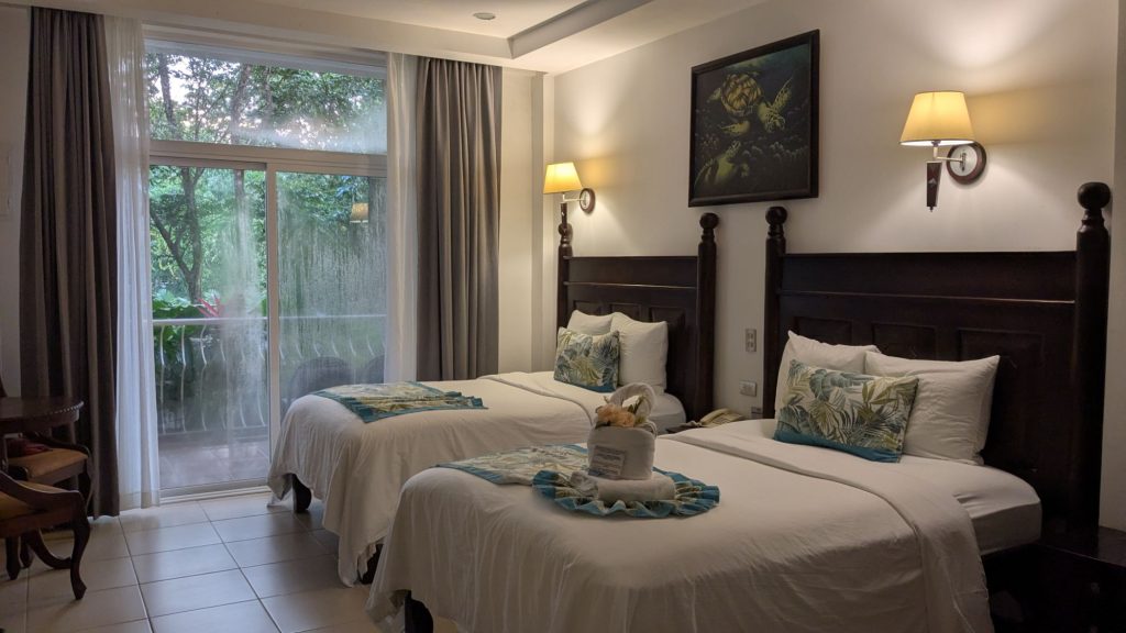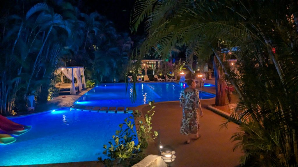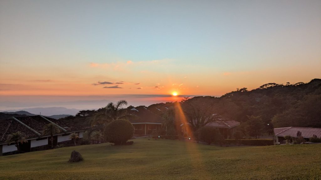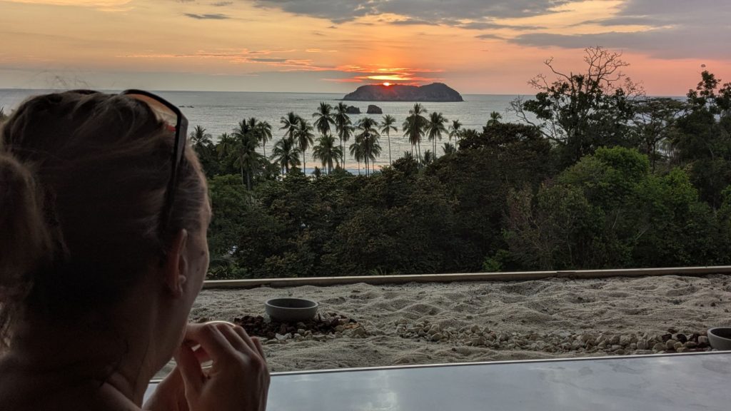Wir sind pünktlich zum Sonnenuntergang in unserem Luxushotel San Bada in Quepos angekommen. Es befindet sich direkt am Eingang des Nationalparks Manuel Antonio. Hier werden wir zwei Nächte verbringen.