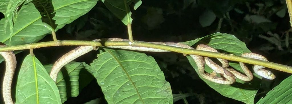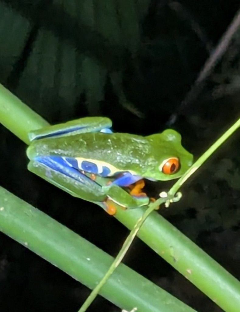 Heute haben wir eine geführte Nachtwanderung im Regenwald erlebt. Es war sehr besonders und wir haben viele „normale“ Frösche, Spinnen und auch Schlangen sehen dürfen. Aber auch der Rotaugenlaubfrosch und der Glasfrosch haben sich uns gezeigt.
