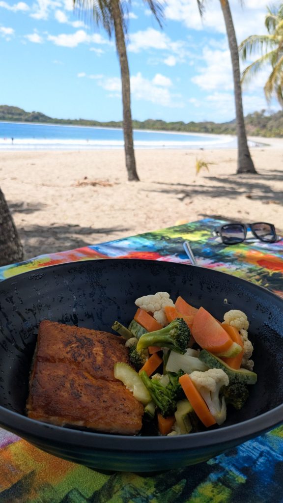 Wir sind an unserem Ziel angekommen und haben ein Mittagessen am Strand kredenzt bekommen, bevor wir im Hotel eingecheckt haben. War schon etwas komisch, aber auch cool. 😎