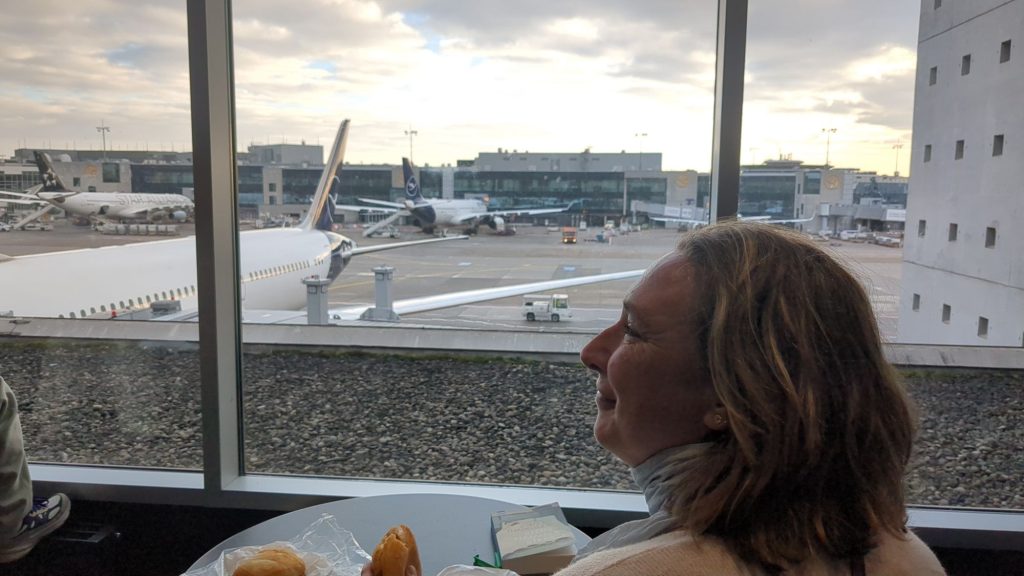 Jetzt haben wir entspannte drei Stunden Zeit, bis der Flug planmäßig startet.