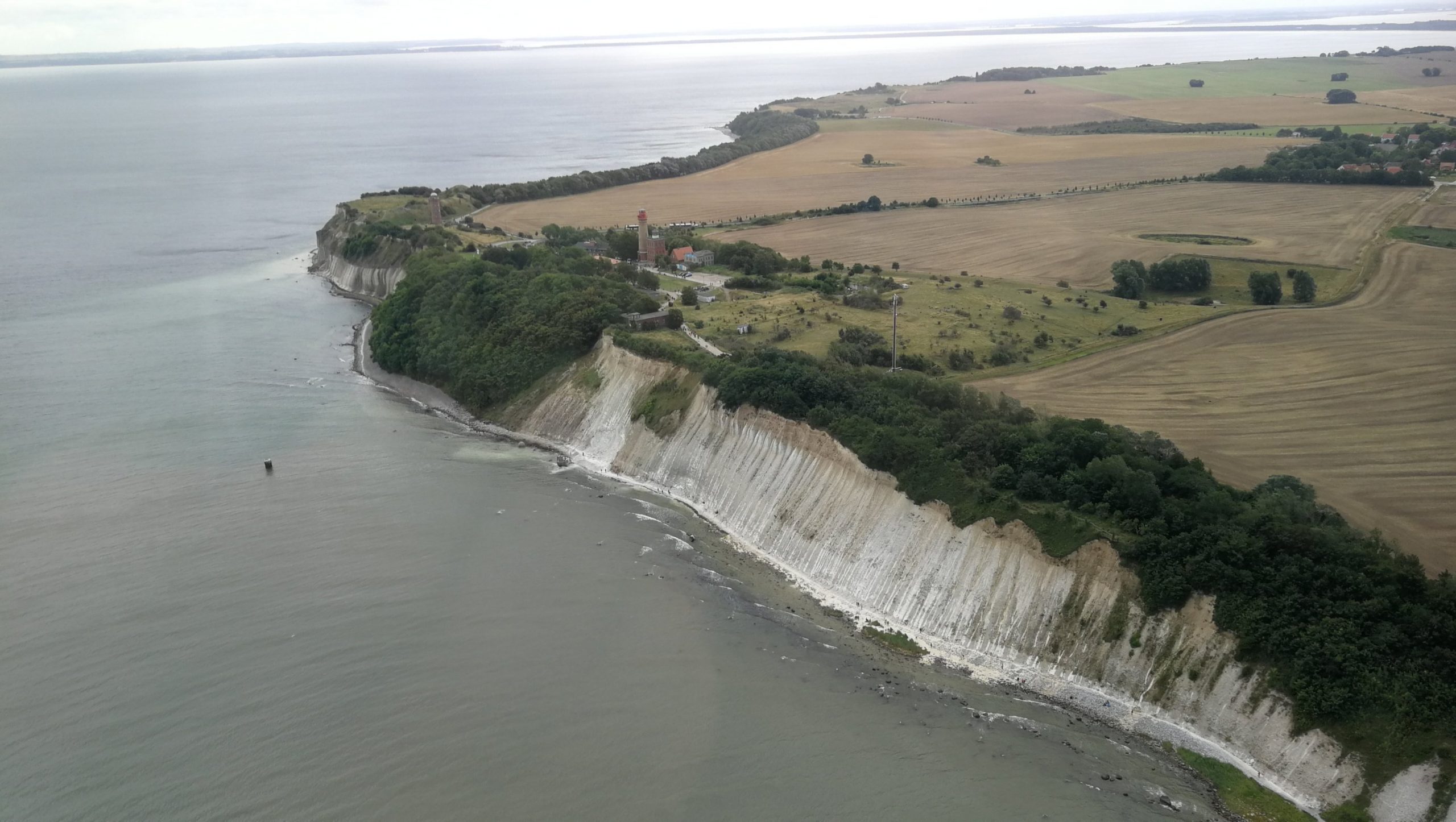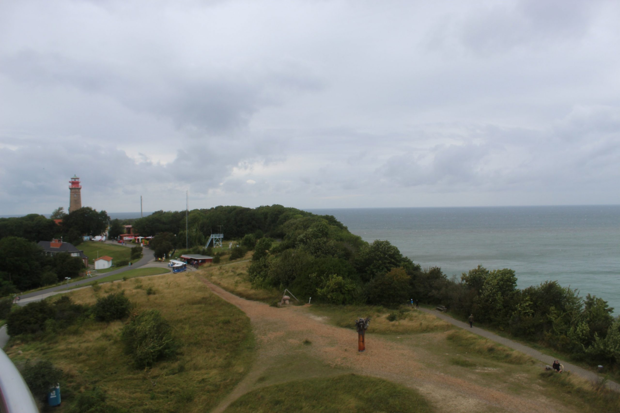 Nachdem wir uns heimisch eingerichtet hatten, fuhren wir ans Kap Arkona. Einen schönen, stürmischen Spaziergang später waren wir am Kap und dachten naiver Weise, wir würden die Kreidefelsen von dort aus sehen. Leider standen wir auf ihm drauf. Somit gestaltete sich der Blick auf die Felswand etwas schwierig. Um das auch gesichert herauszufinden bestiegen wir noch einen Aussichtsturm.