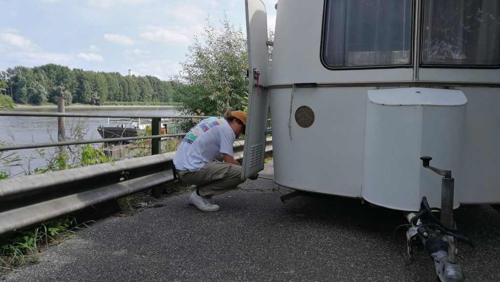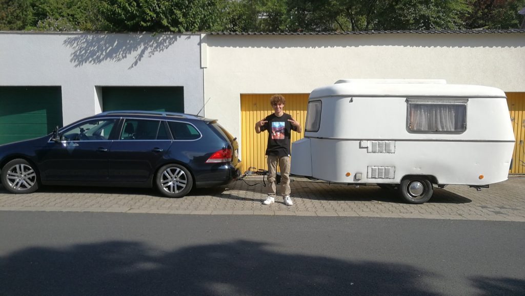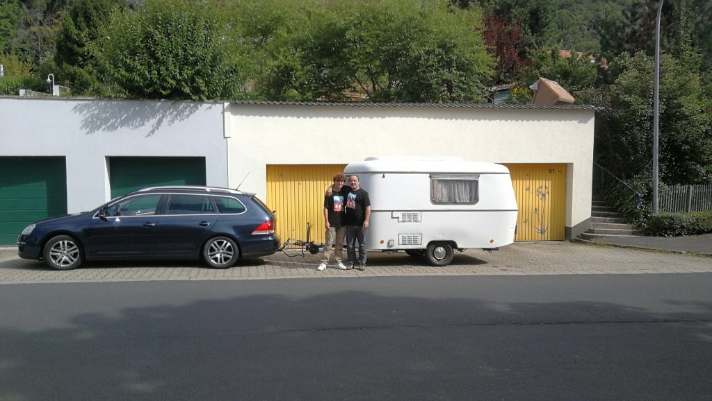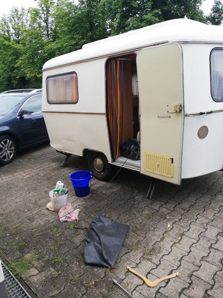 Auch wenn das Ziel erst zu 90% feststeht, müssen wir doch mal unser mobiles Heim etwas aufhübschen. Bruno ist gerade dabei den Wohnwagen zu ‚clearshippen‘.