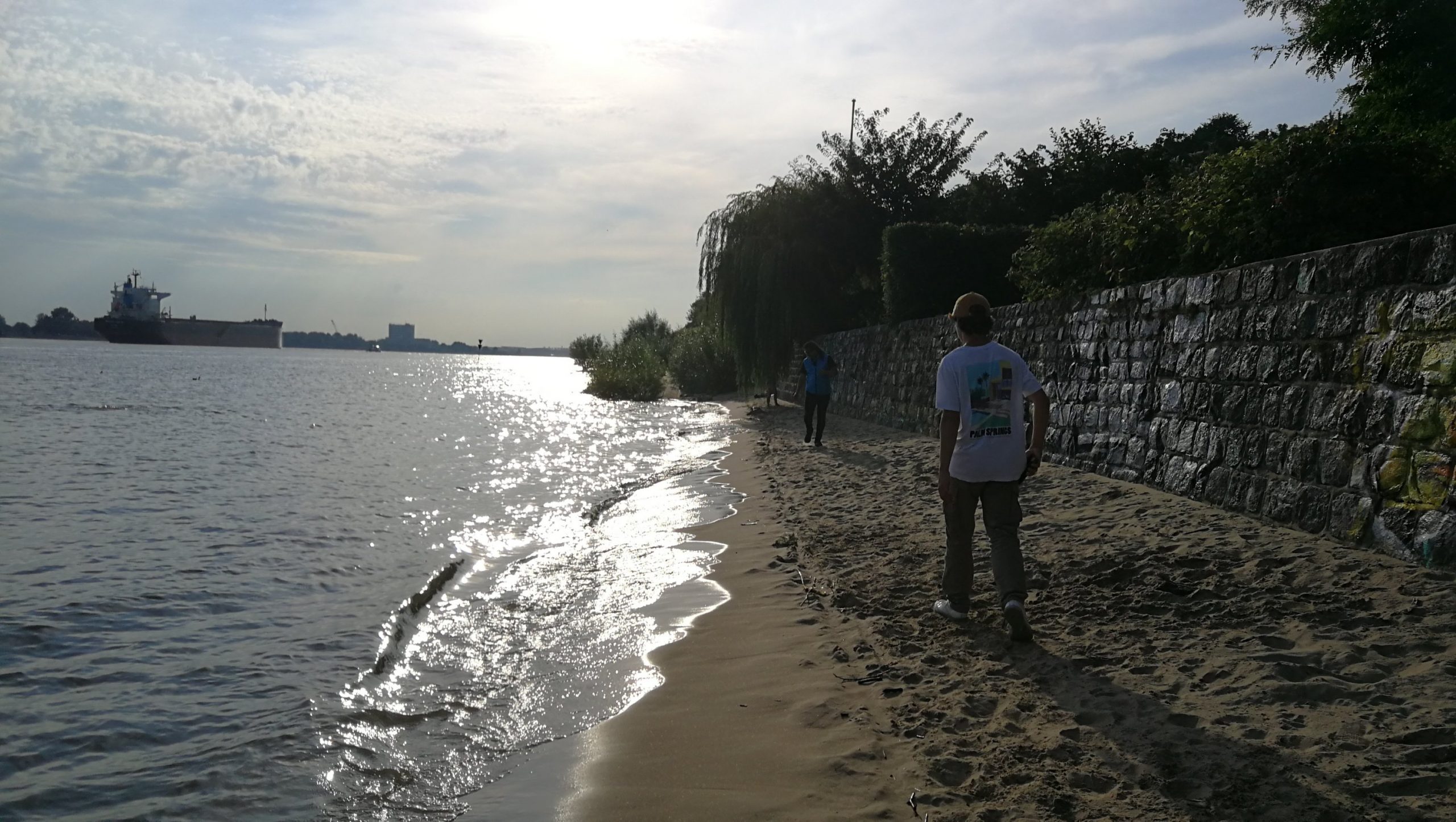 Nachdem wir unseren First-Class Übernachtungsplatz fertig gemacht haben sind wir nach Hamburg rein gefahren und haben auch hier etwas gebummelt. Aufgrund des fantastischen Wetters war die Stadt sehr voll. Also sind wir zum Elbstrand weitergezogen und haben einen ausgedehnten Strandspaziergang gemacht.