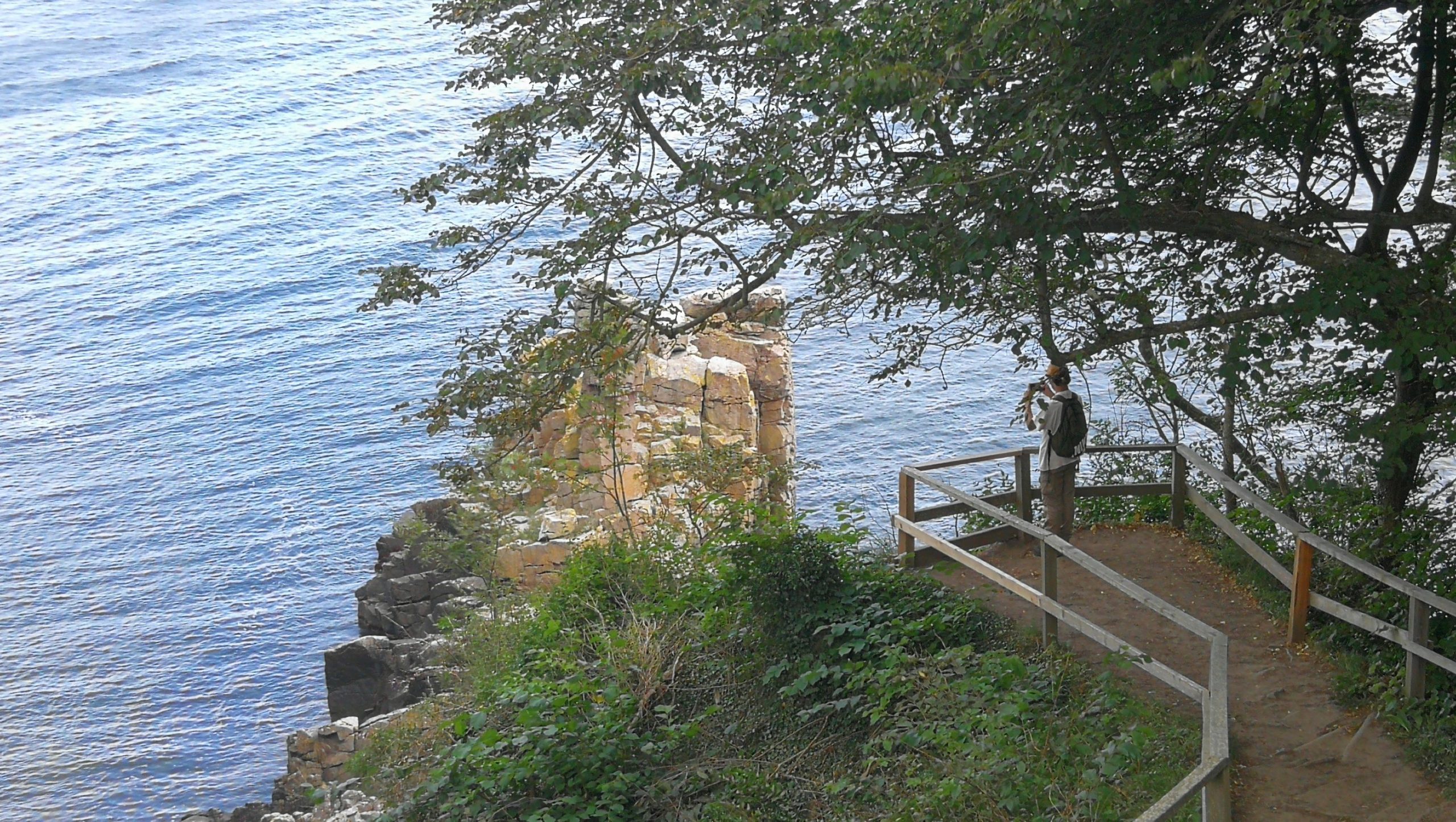 Da heute noch sehr schönes Wetter ist, haben wir eine kleine Wanderung gestartet. Als erstes kraxelten wir zu einer Grotte (Sorte Gryde), die wir auch ein paar Meter im Inneren erkunden konnten. Nun sind wir auf dem Wanderweg, der sich durch die komplette Küste von Bornholm zieht. Wir wollen von Helligdomsklipperne bis Gudhjem wandern.