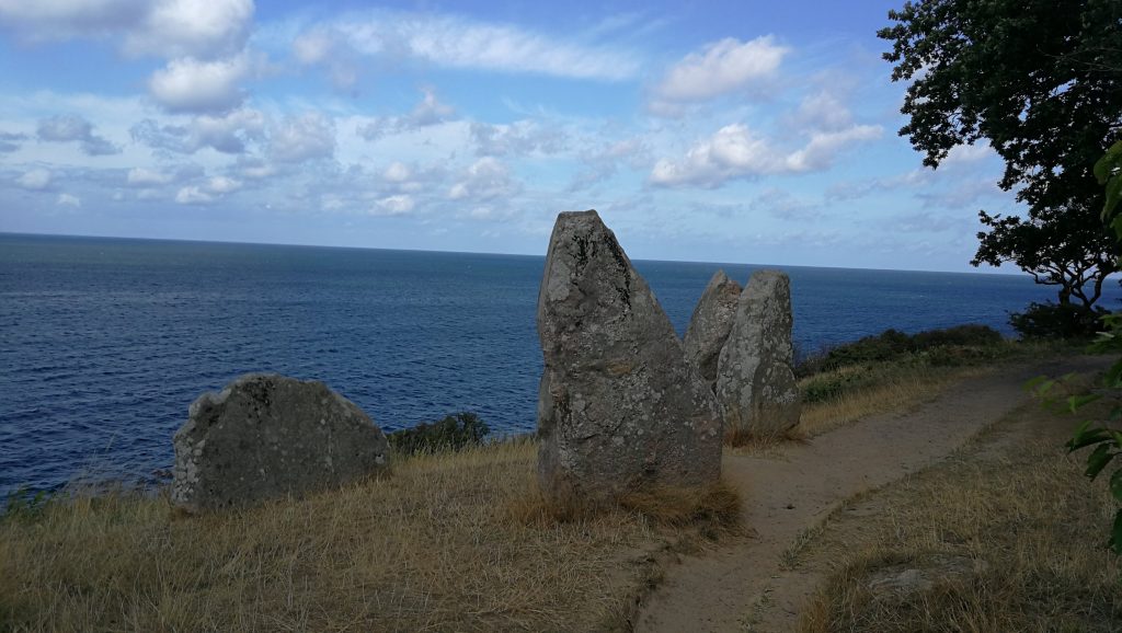 Da unser Campingplatz auf Bornholm im Naturschutzgebiet liegt, haben wir noch einen kleinen Abendspaziergang ans Meer gemacht um evtl. einen schönen Sonnenuntergang zu erhaschen. Dieser war leider von Wolken verdeckt, aber die Landschaft war wunderschön. Eine bisschen eine Mischung aus Mini-Norwegen und Irland.