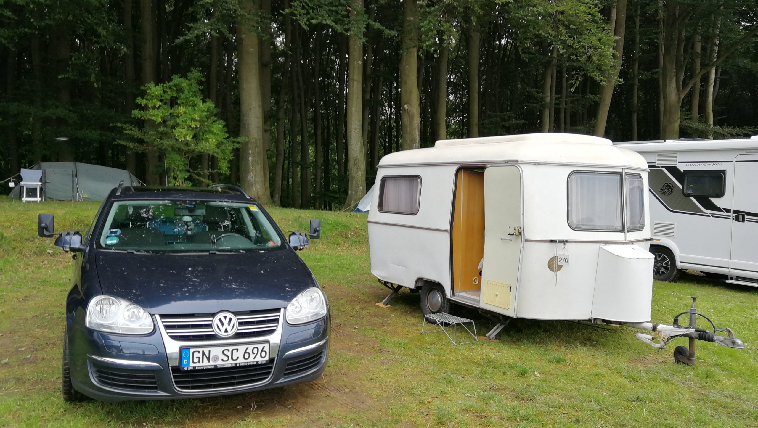 Heute Morgen haben wir unseren Platz in Sandvig geräumt und sind nach kurzer Fahrt auf die Fähre gefahren. Drei Stunden und zwanzig Minuten später waren wir wieder in Deutschland und legten in Sassnitz an. Auch hier nur eine kurze Fahrt zum Naturcamping Krüger in Polchow. Sollte man nicht sicher sein, in welchem Land man sich befindet, macht einem der omnipräsente Mundschutz wieder klar, dass man in Deutschland ist. 😷